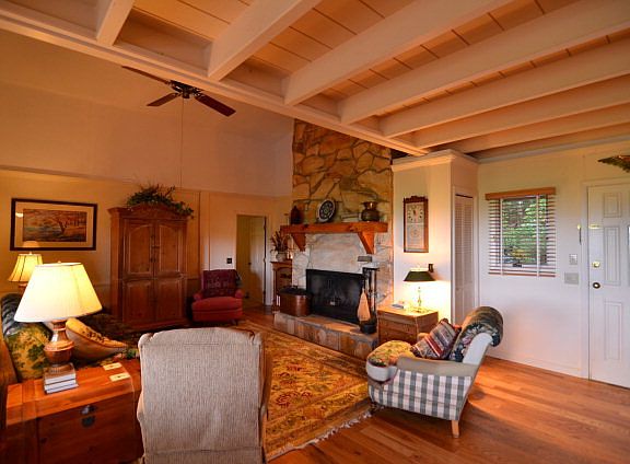 If you have vision, this house and property has lots to offer. House is livable just as it is, but could be updated for a dream location. Fix some of the structural issues and you can walk to town, and have a great view on 1 1/2 acres. Four bedrooms, three baths, on two levels, with a loft area above the living room that makes a great office or den. Great porch off back takes in the mountain view. Two large master suites on the main level.