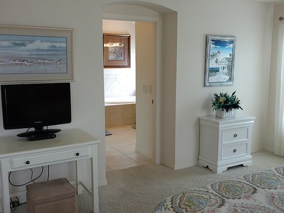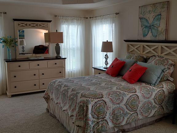 Come see this One of a Kind Designer Lily Stucco Block Construction located in Buttonwood with golf cart garage! This Turn key home will surely impress you from the moment you pull up to this beautiful home. Epoxy Finish driveway leads to the wonderful entry door to be greeted by grand appointments. Upon entering you'll feel the open floor plan and you'll notice the lovely furnishings through-out. Updated stainless appliances, Kitchen solar light and rich elegant cabinets. Water softener. Epoxy Floor in Garage. Situated on a Large corner lot this home offers privacy with no neighbors behind. Included with this turn key home is your own personal Hot Tub for relaxing in the enclosed lanai. Tray ceilings in master bedroom and second bedroom. Master Bath has walk in roman shower along with a garden tub. You must experience the huge "Ladies Dream" Closet with organizers, slide out shoe rack. The second bedroom has a large Bay Window offering plenty of natural light. Ample third bedroom with volume ceiling and guest sized closet. Pocket doors for privacy off the two bedrooms in this split floor plan. You will be thrilled with this outstanding home! Bond Balance is $17,282.30, Annual Bond Payment in your taxes is $1520.30, CDD Fee is $648.20 a year and Fire Assessment is $81.00, Monthly Amenities fee is $148.