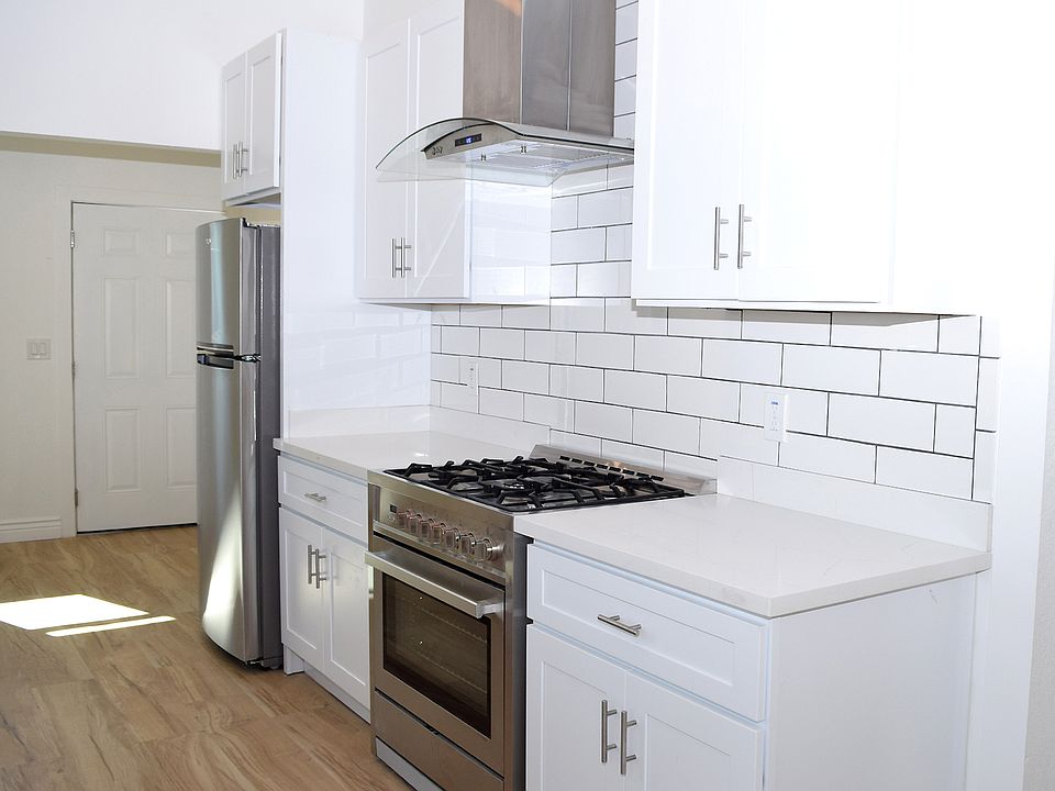 Beautiful upper flat with a completely remodeled and redesigned open floor plan. Spacious Kitchen with subway tile backsplash, generous storage and all stainless appliances including stainless sink. A gas stove to bring out your inner chef. Dining area off kitchen. Spacious bathroom with shower over tub. Linen closet with sliding door. Laminate flooring throughout as well as all new windows and recessed lighting. Unit includes one off-street parking space. Be the first to live in this newly remodeled and redesigned flat. One Year Lease No Smoking Owner Pays Water and Garbage Tenant pays $780.00. A One-Time Real Estate Fee Equaling 30% Of One Month's Rent.