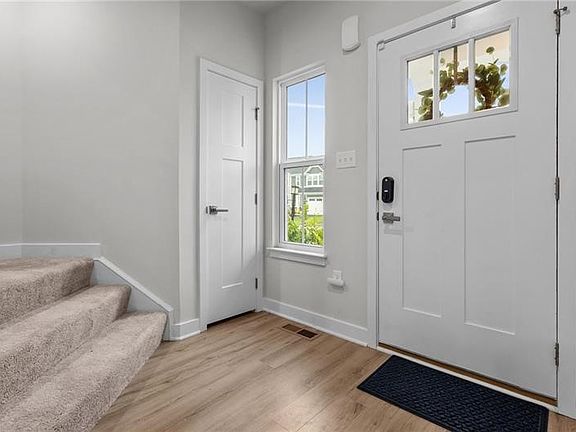 Panoramic riverside views surround this stunning townhome in the heart of Beaver County. This "Roxbury" unit features 6' extension on rear of home. LVP flooring in foyer, kitchen and baths. This fabulous kitchen offers quartz "frost white" countertops, kitchen island, upgraded slate appliances., gas range and walk-in pantry. Upstairs has owner's suite w/ ceramic-surround walk-in dual shower, tray ceiling, walk-in closet & secondary closet. Two guest bedrooms w/ hallway bath & convenient laundry room complete the 2nd level. Lower level is plumbed for future bath and ready to be finished. Gas tankless hot water heater. Smart home including a SimpliSafe alarm system, Google NEST thermostat, Google/Yale deadbolt and a wired Nest doorbell. 12x12 composite decking with privacy fence makes the perfect to enjoy your morning coffee or BBQ with friends and family with the most amazing views. Within walking distance to shopping dining and entertainment venues. Only minutes to route 376.