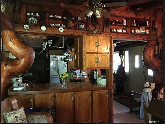 This 2 bedroom log home is situated on 130 acres of pure paradise. The home itself has a newer roof, Safe Step Bathtub, huge windows to overlook the lot, a 15x18 sunroom and a room added on off the kitchen for all your storage needs. The logs used to build the home are between 10-14 inches thick. The interior of the home also features a large number of blizzard logs. Are you wondering what to do with 130 acres? There are 3 stocked ponds including a windmill on the main pond, 3 miles of kayak streams, 10 miles of ATV trails, over 50 blueberry plants and a large barn for all of your storage needs. A half mile from the road there is also a log hunting cabin with a wood burning stove and features a large staircase up to a copula for all of your hunting needs.