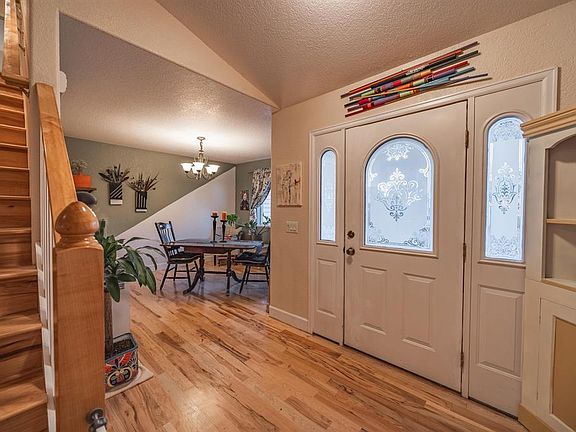 Take an in person look at this unique and spacious home that is situated at the end of a culdesac and borders open space adjacent to the City of Montrose Golf Course. This home offers character and abundant charm with room to stretch out - no cookie cutter model here! There is abundant light throughout the home with tall ceilings and the bonus of a fully landscaped and irrigated front and back yard (watered by irrigation water and a new pump). The main level of the home includes a main floor master suite with large walk-in shower, formal dining room, functional kitchen and a living room with tall ceilings, gas fireplace and beautiful wood floors. Upstairs you will find extra bedrooms and a large multipurpose room that functions wonderfully as a home theater, game room or anything you can imagine with the added bonus of a large deck to take in the surrounding views. The home is equipped with a radiant floor heating system inside and a plug in option to extend to the garage, driveway and sidewalk (no shoveling snow here!). The attached 2 car garage features roll up doors and tall ceilings with plenty of natural light and the back yard offers access to a small garage that could work to store your golf cart for easy access to the City of Montrose Golf Course directly adjacent to the property, OR could be used as a storage shed or workshop. This home has so much to offer and is worth an in person tour. Schedule yours today!