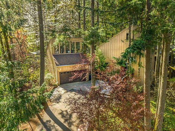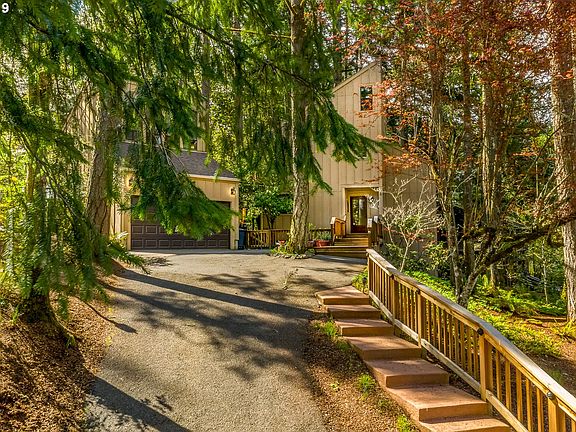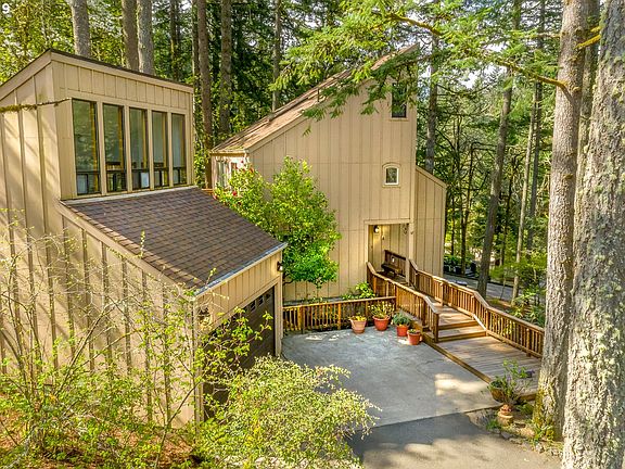 This beautifully maintained SE Eugene home is set among the trees. Windows & glass doors allow views of the outside & access to the naturally landscaped backyard & decks. Skylights add additional light and, for ambiance and heat, there are two gas fireplaces. A loft area serves as a great library/office; upper level master suite w/den, and bedrooms downstairs. Above the garage has 17x12 studio.