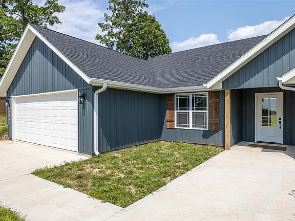This newer built home offers 3 nice sized bedrooms, 2 baths, 2 car garage, open floor plan as well as split bedrooms for privacy. Kitchen has custom white cabinets, quartz countertops and center island for additional setting. Living room is nice size with a vaulted ceiling. The master bedroom is very roomy, with a walk-in closet and a full bath! Covered front porch and concrete rear patio. Waterproof plank flooring throughout, board & batten on front of home and lap siding in sides and back. Located in a nice neighborhood on the edge of Lebanon, within minutes of shopping and restaurants, and quick access to I-44.