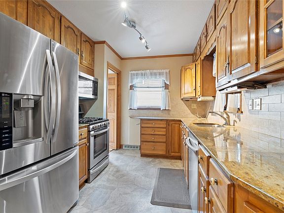 Welcome to this charming and spacious 1.5 story home, complete with a 2 stall garage and screened in porch! As you step inside you will be greeted by 2 living spaces filled with plenty of natural light. The main level features two bedrooms, two full baths and a stackable washer and dryer for convenience. The kitchen boasts updated appliances, countertops and ample cabinet and pantry space. The basement space offers additional finish, half bathroom and plenty of storage room while the upstairs can serve as a versatile space of it's own. Outside, the home showcases a plant lovers dream with plenty of beautiful summer foliage. The two-stall garage provides ample parking space and more than enough room for all your belongings. Conveniently located for those seeking a balance between suburban serenity and urban amenities. Don't miss the opportunity to make this adorably spacious 1.5 story home your own!