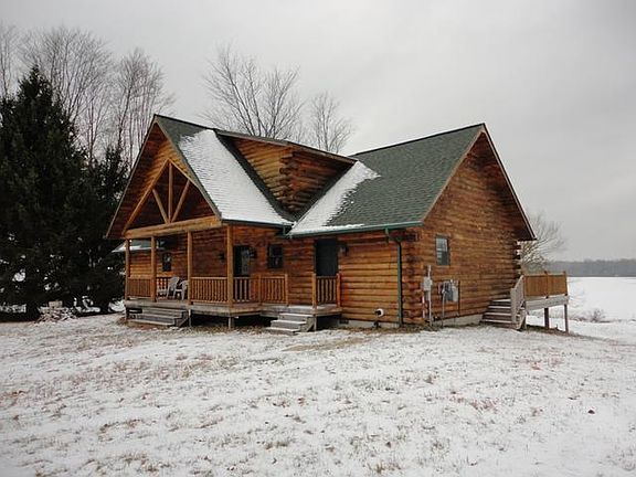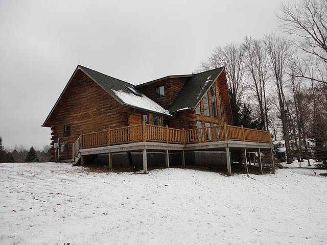 Incredible Log home is ideally situated on 1.4 acre on all sport Windover Lake, has 3 bedrooms 1 down 2 up 3 bath, Hickory floors through out. On demand hot water system, central air, stone gas fireplace, forced air natural gas heat. This beautiful home needs some finishing and can finish to your own taste. Has 3 car garage log sided with upstairs with plenty of room to make into guest house for family and friends. Close to many other lakes in the immediate area and close to Lake George for groceries & ect. You will absolutely enjoy this unique home. This is a dream come true, see it today!