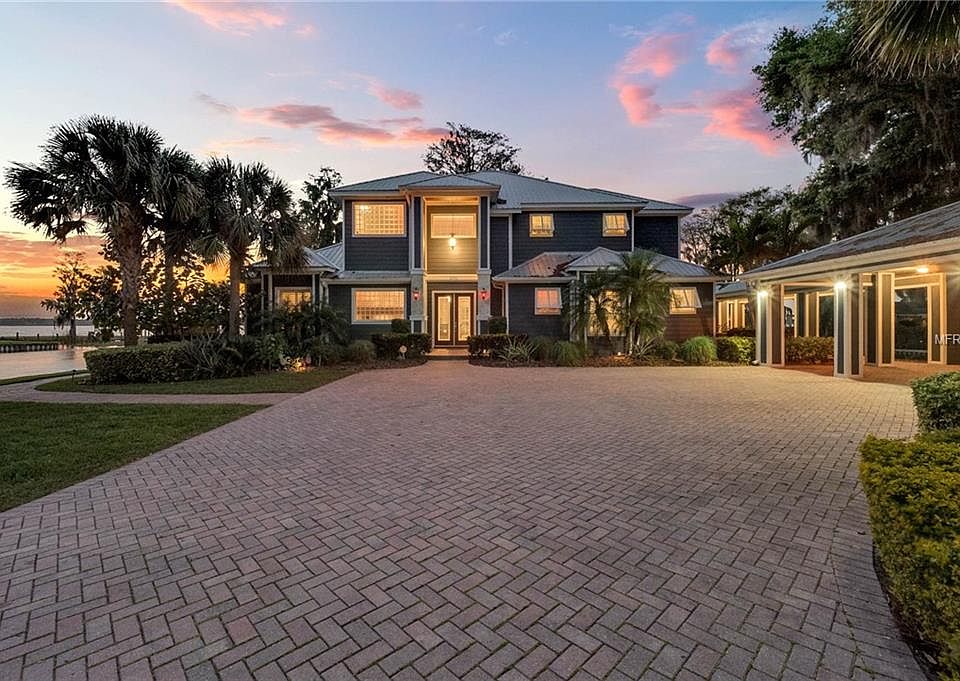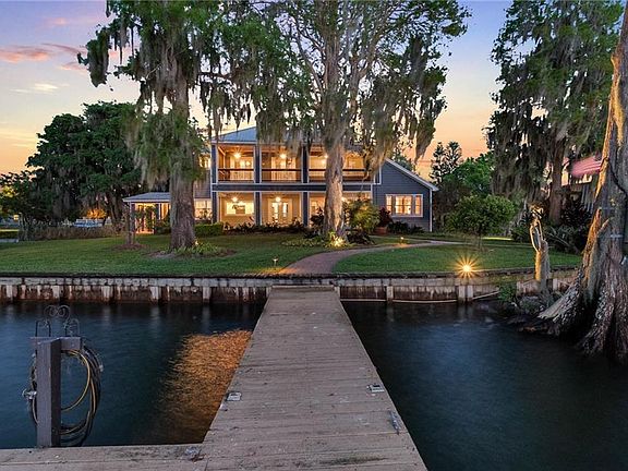 Paradise on The Chain! This amazing 4 bedroom 3.5 bath lakeside treasure fronts the gorgeous Winter Haven Chain of Lakes where you will enjoy access to over 20 different lakes, waterfront restaurants/bars and the world-famous Legoland ski show. Located on beautiful Lake Eloise, this property offers large entertaining decks, lakeside hot tub, outdoor kitchen and bar area, two docks, covered boat lift and lots of room for lounging and enjoying this waterfront oasis. Spanning over 3020 sqft, the interior has a relaxed and open layout with soaring ceilings, spacious great room, wall-to-wall French doors and lower/upper porches for enjoying the amazing lakefront setting. Kitchen is set-up for entertaining with two raised bars/buffets, granite countertops, Viking Professional Series appliances and a full-sized Viking wine/beverage cooler. Upper level is home to the private master suite with it's own sunset balcony, California style walk-in closet and a relaxing master bath with soaking tub, walk-in shower and granite vanity. All guest bedrooms are downstairs each with en-suite bath access. Spectacular outdoor living where you can easily entertain 100's of guests while grilling out, serving drinks and watching TV at the lakeside tiki bar. Launch the boat for a morning ski session or seek out that trophy bass you've been searching for. Whatever your passion, this waterfront home will provide endless enjoyment, relaxation and satisfaction knowing you're living your best life. MAKE SURE TO CLICK ON THE VIDEO LINK!!