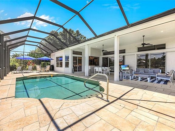 High ceilings, walls of glass and fabulous floor plan with sparkling lake views all around. Open and spacious great room floor plan has oversize kitchen with breakfast bar. All new stainless steel appliances and separate coffee or wine bar give the perfect layout to the kitchen. Sparkling lake views abound too! Neutral large tile throughout the main living area. Floor plan is perfect for a family that needs 2 home offices. One den has French doors to close off for private conversations. A flex space could be a dining room, den/office or kids play-room. The versatile layout will please most buyers. The owner's suite has a large walk-in closet and a second straight closet. Dual sinks, large shower and soaking tub grace the owner's bath. The split plan has 2 guest bedrooms with 2 baths in a separate wing. One bath also serves as a pool bath. There are 2 sets of pocket sliders opening the home up to the expansive lanai. The lanai has tons of space both under cover and around the pool for sunning. Pool has new filter, pump and heater. There is also an auto fill for the pool. There are electric hurricane screens on the covered lanai and manual shutters for the rest of the house. Newer roof, gutters, AC, WH, security cameras, custom lighting.... the list goes on and on. A fabulous buy. A must see. Imperial Golf Club is optional and no memberships are required. Low HOA fees. Imperial has a great location close to beaches, Mercato, and wonderful dining and shopping options.