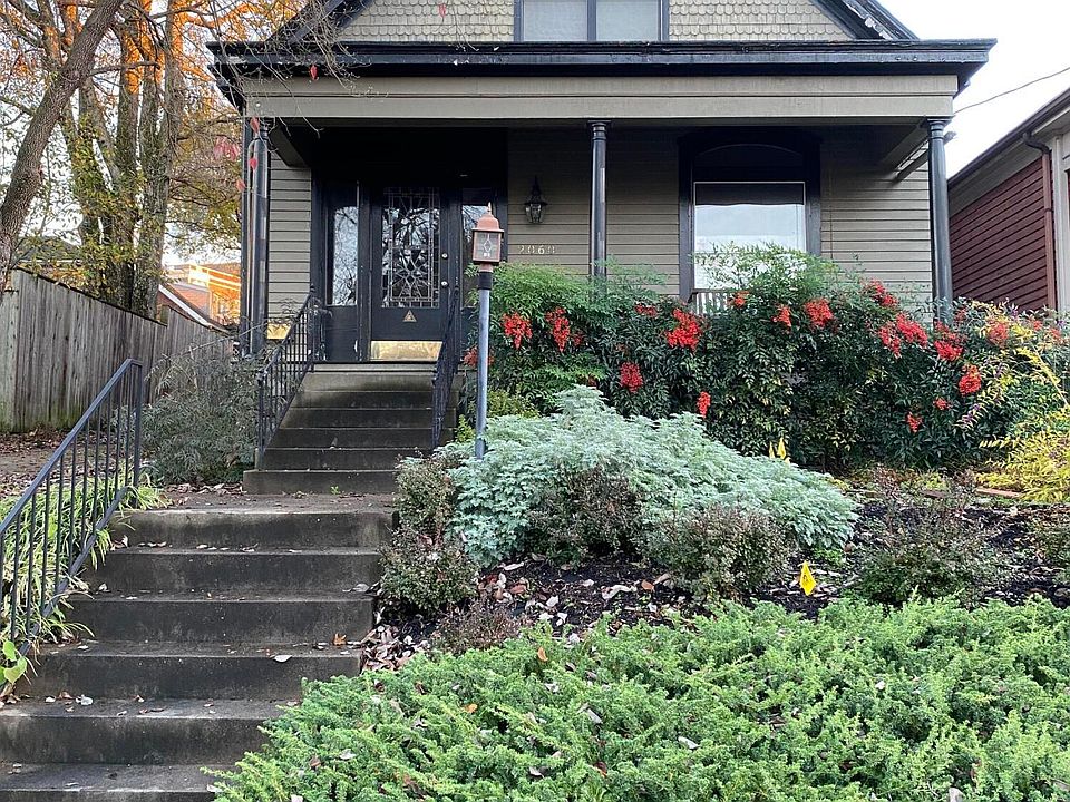 Highly desirable Cherokee Triangle location just steps from Cherokee Park! Don't miss this rare, park-side, sweat-equity opportunity! This 2BR/2 full bath could be converted back into a 3BR. The 2nd floor is configured as separate quarters with its own access, & is an ideal family member suite with bathroom (non-conforming), kitchenette, bedroom, living area & HVAC. 1st floor has high ceilings & the living area boasts floor to ceiling built-in bookshelves. Spacious 1st floor kitchen & sunroom adjacent. Hardwood floors on 1st floor, carpeted 2nd floor. Carpets and all bath tile professionally cleaned Oct 11. Large unfinished basement great for storage or possible ''cave''. Spacious 2-car garage! Mow-free front & back yards boast Dogwood trees & established anchor plantings -- backyard is ready for your touch to restore it to its former glory. (Exterior photos taken Oct 18 and Nov 19, 2024.) Beautiful fireplace in front sitting area & another in primary bedroom. Pre-listing home inspection available with Seller Disclosure. Bring your paint brush and some TLC to make this gem your own! Home is in the preservation district, see louisvilleky.gov page for details regarding standard design guidelines for exterior updates.