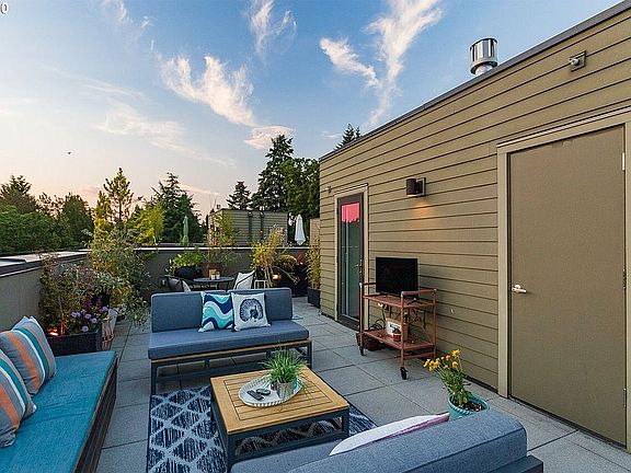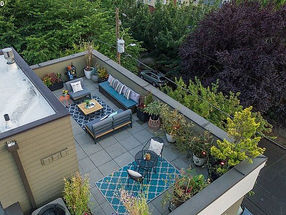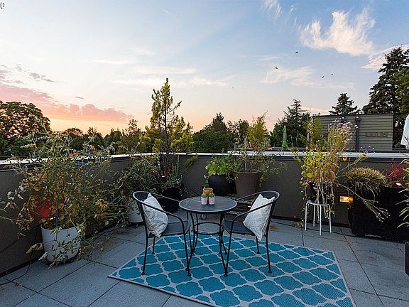 Welcome to dialed in Irvington living with this townhouse-style condo! Ease of a condo but lives like detached home w/ private entrance, attached oversized garage & an unbelievable spacious roof deck with views for miles. It is paradise! This is modern living in the beautiful and highly sought-after Historic Irvington district in NE Portland with a walking score of 93 (bike score 100!) and all the great amenities of the Irvington District all around you! This one-of-a-kind green built townhouse includes patios on every level to enjoy a morning cup of coffee or entertain friends and family. The 500sqft terrace has views of the West Hills has a gas hook-up and space for everyone....just amazing! Every floor is filled with tons of south facing light and floor to ceiling windows to fill every room with natural light. Among the many great features of this amazing modern 3 level, 1900 sqft floorplan are: 3 spacious bedrooms (dual master en suites on top level and one ground level that is perfect as an office, exercise room or another bedroom); 2.5 bathrooms; large stylish kitchen with Neil Kelly cabinets, quartz counters and chef grade SS appliances; elegant gas fireplace; oversized garage for a full size car and tons of storage; separate laundry area in garage; bamboo floors; modern and stylish finishes throughout; secure entrance gate with coded lock. Great Portland schools: Irvington elementary and Grant High School. Have it all with this turnkey stunner today!