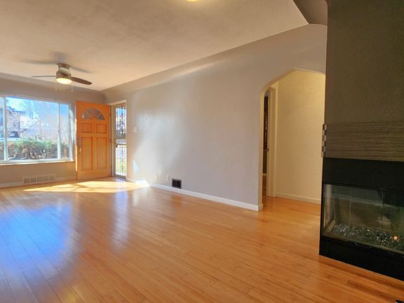 Remodeled 2 bed just 1 BLOCK to Sloan's Lake! This half-duplex is great for entertaining with the spacious layout, large fenced backyard, and covered patio. Unbeatable location in a multi-million dollar neighborhood. Short walk to all the restaurants and shops in Highland Square, Edgewater, and the Sloan's Lake redevelopment. Inside offers all bamboo wood floors, modern gray themed paint and tile, granite counters, gas stove, dishwasher, and a cozy gas fireplace. 2 good sized bedrooms w/ plantation shutters, and large bathroom with custom shower and bench. Evaporative cooler keeps the place nice and cool in the summer. Tankless hot water heater, newer windows, and fenced yard w/ sprinkler system. Private detached oversized one-car garage plus plenty of street parking. Additional storage shed off the patio. Tenant required to cut the grass weekly. Water/sewer, trash, washer and dryer included. Sorry No Pets. Check out the video tour on our website at PremierREM dot com or searching youtube "2060 Newton Video Tour 3-15-25"