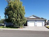 Walk to the Ruby View Golf Course from this nice 1,744 s.f. 3 bedroom, 2.5 bath one level home featuring an open split bedroom floor plan. The great room has a vaulted ceiling & a freestanding gas fireplace with a dramatic brick hearth, while the kitchen is spacious with a handy breakfast bar & bright dining area. The master bedroom boasts double closets & a large tiled shower. There is a separate half bath & spacious laundry room with a utility sink, storage & access to the attached 2 car garage with shelving. The yard has mature landscaping, sprinklers, storage shed & a rear deck surrounded by fruit trees.