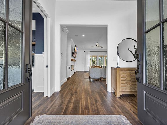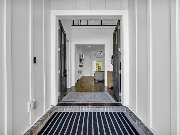 Welcome to your dream home! This stunning custom built 4-bedroom, 3.5-bathroom house with an office offers 3650 square feet of heated space and a total of 5200 square feet. The entire house features quartz countertops, including bathrooms and the office. The spacious living room boasts built-ins, an ice maker, wine cooler, and a utility sink. The kitchen is a chef's dream with cabinets to the ceiling, wood floater shelves, deep drawers, a Kucht 8-burner dual oven range, a vented range hood, a 68-inch fridge, and a walk-in pantry with built-in shelving. The kitchen also showcases 2-ton white wall cabinets and a dark blue island, complemented by Mohawk LVP flooring and custom fixtures. The office is adorned with beams and wainscoting, while crown molding graces every room. Craftsman-style floorboards measure 7 inches, and the utility closet features barn doors. There's under-stairs storage with a built-in dog room, and the drop zone/laundry room includes built-in cabinets and quartz countertops. A subway tile backsplash adds a classic touch. Enjoy the built-in brick fireplace with shiplap and shelving on both sides. The back porch is screened in and includes a built-in kitchen with outdoor fridge capability, while the outdoor patio measures 32x20. The entire house is equipped with built-in surround sound featuring 20 speakers. The master bedroom is a retreat with ceiling beams, a shiplap wall, a toilet closet, a walk-in tile shower, a double vanity, a linen closet, and a walk-in closet with an accent wall and built-in shelving. The foyer boasts a 22-foot ceiling, and the upstairs ceilings are 9 feet high. LVP flooring extends through the living area, with built-in shelving in the living room. All three upstairs bedrooms have walk-in closets, two of the bedrooms offers it own bathroom with tile showers. Two bedrooms are carpeted. There's storage over the garage (25x12) with Cat 5 wiring throughout. The house includes recessed lighting, a security system with cameras, aluminum railing, and Cat 5 wiring in every room. Plantation shutters complete this exquisite home. Enjoy the largest amenity center on the east coast!! Multiple pools, olympic style pool, fitness center, kids playground, tennis courts, bocce ball, boat storage, fishing dock, gated community and much more!! Don't miss out on this exceptional property!