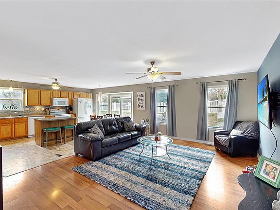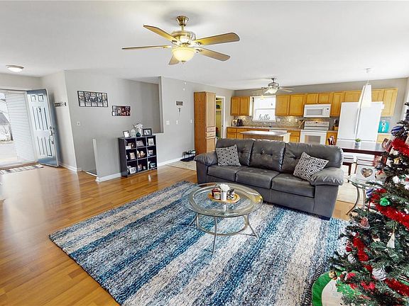 Just imagine, Sitting on a front porch waving as your neighbors pass by. Then you walk into an open concept living room, kitchen, and dining room. This is a great place to entertain or hang out with the family. Off the kitchen, the main floor laundry makes life easy so you don't need to haul laundry to the basement. Next, walking down the hall you'll find three bedrooms all with ceiling fans. As you walk into the master bedroom you will find a full bathroom and walk-in closet. Next, head downstairs to find a large recreational area. Notice the counter, cabinets and sink that can serve as a wet bar. Wood parquet floors cover most of the rec room with a family room area on the back end. Off the family room is a fourth bedroom. From the rec room is an office nook, where you can work from home, and a full bathroom. As you walk off the composite steps into the backyard you will find a beautiful stone patio made from various types of stone. Schedule a showing before it's gone.