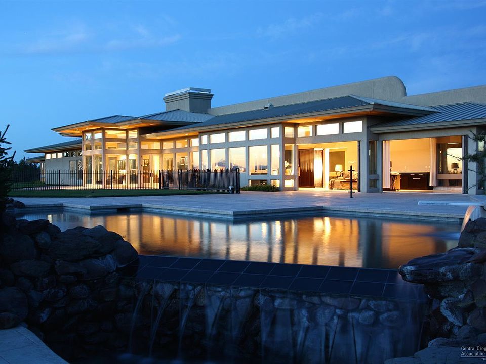 Exquisitely Remodeled Estate with all new, HVAC, Electrical, Pool Systems, & too much to list. 8 minutes from Bend on 25 acres w/long private driveway. One level home is 6804sf with soaring windows & breathtaking views of the Cascades. Formal living/dining room, extraordinary finishes throughout, 5 master suites, theater room, Sonoran Cactus ceiling, heated floors & triple car garage. Outside enjoy the Pebble Tieck pool, 7 water falls, hot tub, outdoor fire pit & a 3700sf+ 400amp fully insulated 6 Car Shop!