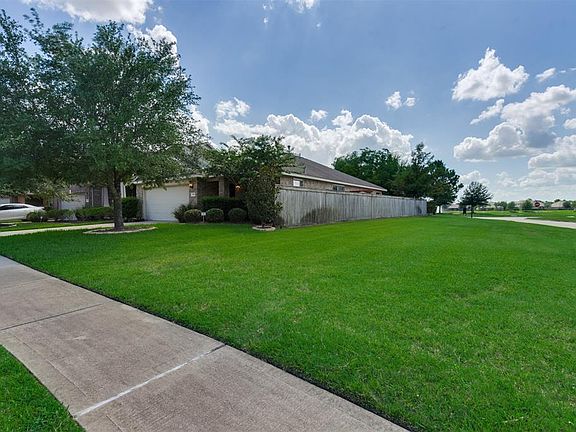 Adorable One Story on Expansive Corner Lot in Wonderful Master-Planned Community. Great location w/View of Lake & Gazebo from side yard. NO backyard neighbors. Large Kitchen w/Breakfast Bar, Corian Counters & Neutral Tile Floors that extend to Dining, Entry, Hall, All Baths & Utility Rm. Refrigerator, Washer & Dryer Included. Private Landscaped Backyard w/Covered Patio - Extended Decking & Brick-Paved Patio for Grilling, Entertaining & Relaxing. Access to 2 splash pads, 3 pools, 2 gyms, lakes, parks, trails, dog park & clubhouse. Did Not Flood.