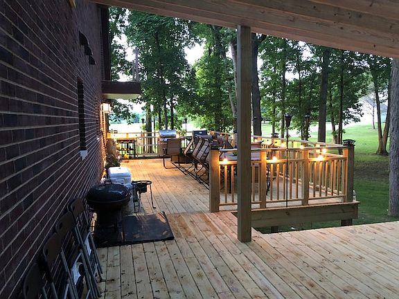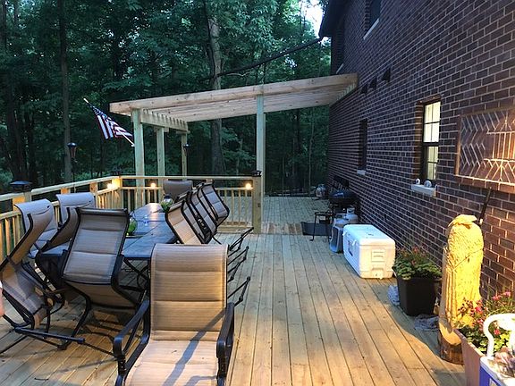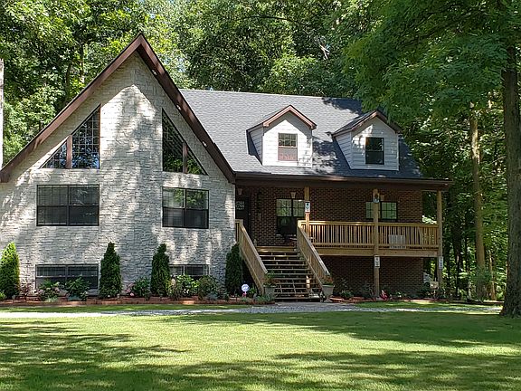 After spending a day on Lake Maxinkuckee, retreat to your country chalet, only a few minutes away. This one-of-a-kind home is near Lake Maxinkuckee with 5 acres of wooded bliss. Inviting open front porch to welcome you home. Modern kitchen with stainless steel appliances, plenty of workspace and cabinets, plus a breakfast bar island. Stunning small leaf Acacia wood floor throughout the main level. Formal dining right off the kitchen. Elegant hand-carved limestone fireplace in the living room with thinly beamed vaulted ceiling. Open staircase with sandstone accent wall leads to the loft with outside balcony, 2 sleeping rooms and a full bathroom with a clawfoot tub and chandelier lighting. Back deck with pergola is set up for entertaining and enjoying the peaceful wooded setting, gas line in place for gas grill if you wish. Lower level family room features a fireplace and has a game room nearby. Floor in lower level is ready for hot water heat to be completed. Sauna room in lower level. The two fireplaces are wood burning. Nine foot ceiling in lower level. Can be sold turn-key with acceptable offer.