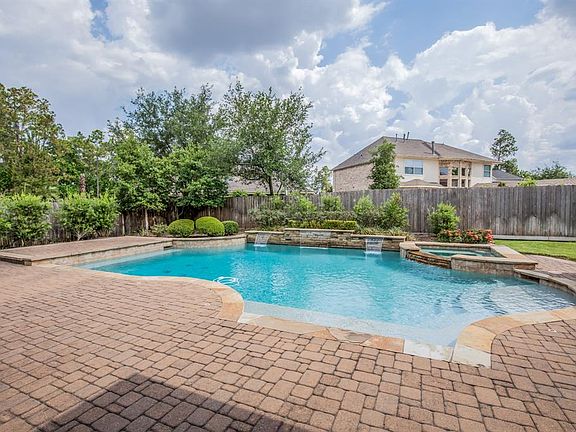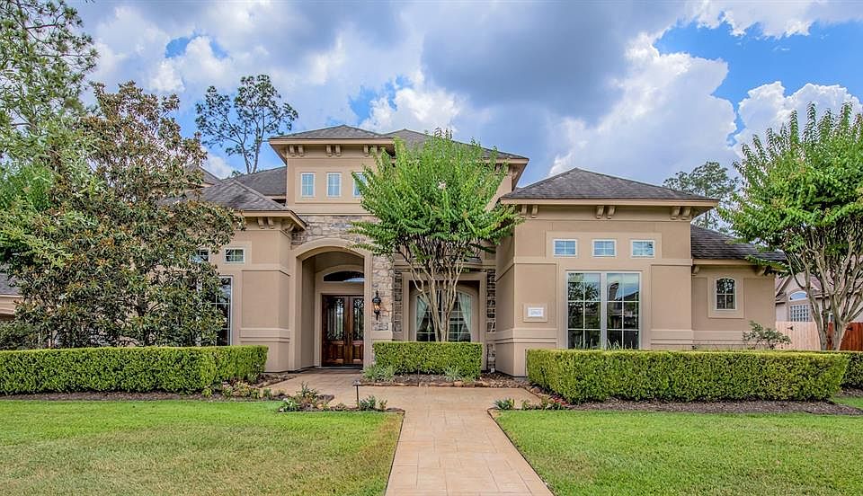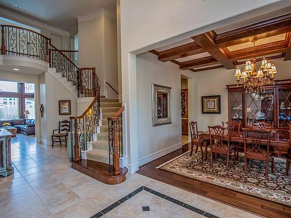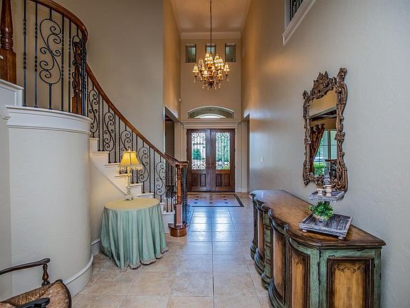 No More Showings - Offer Accepted. Stunning, Mediterranean estate home built by Southard Homes sits in the gated Estates of Eagle Lake in Windrose. Grand double entry doors open to the sweeping staircase, showcasing immediate views to the back landscape and pool. Newly remodeled primary bath with elegant freestanding tub and modern touches. Additional private and large bedroom downstairs with full bath. Den features soaring ceilings and large picture windows filled with sunshine. Dining room boasts wood beams with a combo wine and serving bar separating the kitchen and dining areas; along with a second staircase. Game room and media room upstairs provide storage with their own custom bookcases and cabinetry, along with 2 computer stations nearby. Texas basement will make you smile this home has storage! Outdoor space offers year-round living with heated pool/spa, outdoor kitchen, additional living space and lush grassy side yard. Oversized three-car garage with built-in cabinetry.