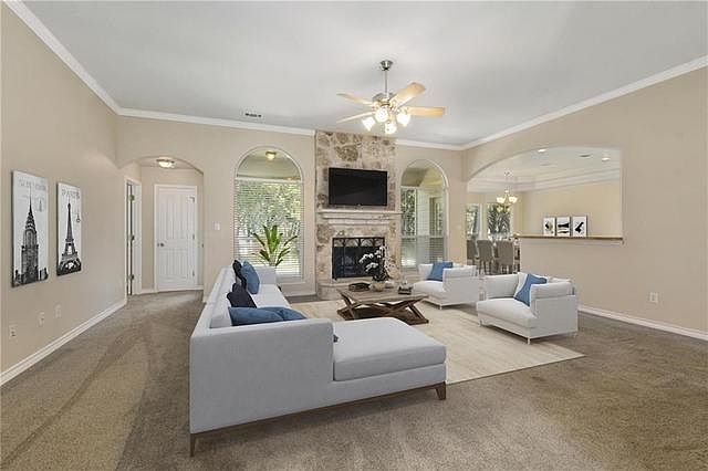 This is a custom built home. Every room is oversized. The Master bath has 2 walk in closets and a Jacuzzi tub and an oversized shower with seating. As well as 2 sinks and the toilet room closes wirh a sliding door. The kitchen has all updated appliances and is an open concept to the living room with a dining area large enough to accommodate a formal kitchen table and a china cabinet. .