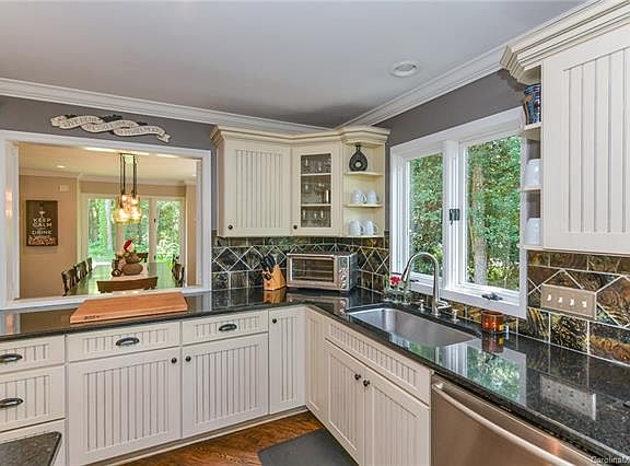 Contemporary craftsman style set back on private wooded,1 acre waterfront lot on one of the most desirable streets in Cornelius w/no HOA. Enjoy your own remodeled dock on a private cove. Great home for entertaining with large chef's kitchen overlooking lake, rec/media room & west facing deck shaded by beautiful mature trees. Walls of windows complete the feeling of being in a quintessential lake house. Kitchen includes top of the line appliances like Viking & Bosch. Media room overlooks rec room and has built in bar to include KitchenAid ice maker and wine refrigerator, and surround sound speakers. Exterior painted 3 years ago, interior paint is fresh & new. New carpet, new windows upstairs, newer heat pumps. Remodeled bathrooms. Fenced yard w/irrigation. There is a finished room under the house-heated & cooled...perfect for exercise room! Ready for quick occupancy-move in now be all settled when boating season starts! Too much to list here so please see attached list of upgrades.
