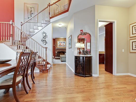 Welcome home to this elegant 2-story townhome with luxurious upgrades located by Deer Park Town Center! The foyer opens to dramatic 2-story dining room or living room. Gorgeous kitchen features stainless steel appliances, crown molding & maintenance free Silestone/quartz counters. Family room boasts Bose surround sound w/the subwoofer built in the floor, crown molding, w/ a cozy fireplace. Family room/eating area opens to the backyard patio for outdoor enjoyment. Head upstairs to be greeted by 3 oversized bedrooms & views into the dining room. Master suite features double-door entry, large master bath, with spacious walk-in closet. 2nd bedroom boasts double closets, crown molding plus views of private backyard. 3rd bedroom features 13-ft. ceilings & walk-in closet. Finished basement offers a Rec Room, office or optional 4th bed w/ French doors for privacy, ample storage space, & full bath. Laundry room boasts custom built cabinets. 2 car heated garage. Enjoy maintenance free living.