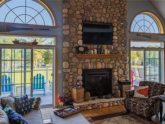 Spacious year around home on the river! Over 2600 sq.ft with finished walkout basement! Great room with a gas fireplace, hardwood floors, and sliding doors opens onto a new composite deck. Main floor master suite and guest bedroom and 2nd full bath. The loft can be used as a 5th bedroom, office space, or a game room. Full walkout basement with family room and wet bar, two bedrooms and 3rd full bath. Three season room off family room with a gas fireplace. Mechanical room has plenty of room for storage and includes washer and dryer. A second washer/dryer set is on the main floor. Ample dockage with power and water. Property is over an acre and there is an additional 1.2 acre lot with 100 of waterfront available. Great property for entertaining! Lot next door is also available (MLS is S1207478).