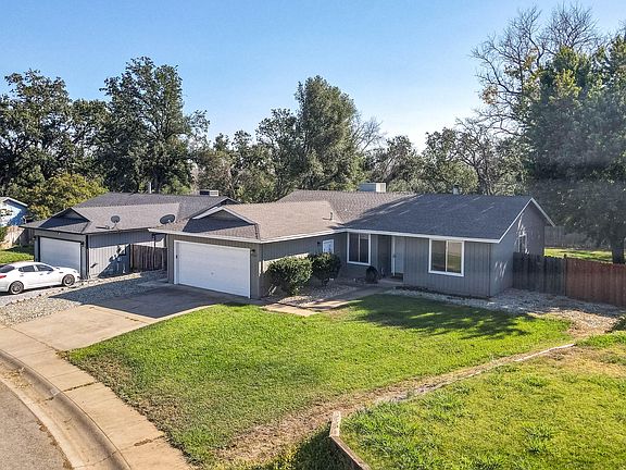Excellent home in move-in ready condition! 3 bedrooms, 2 bathrooms, great neighborhood, large yard and large sized parcel, backs up to open space so no rear neighbor! Good sized 2 car garage, plus extra wide side gate with oversized storage shed. New countertops and cabinets, new sliding glass door, new woodstove, the home has an open floorplan plus dual closets in the primary bedroom with stall shower in primary bath. Nicely upgraded hardware and lighting fixtures. Luxury vinyl flooring in kitchen, dining, living room and hallway.