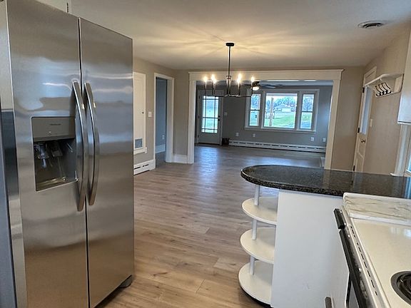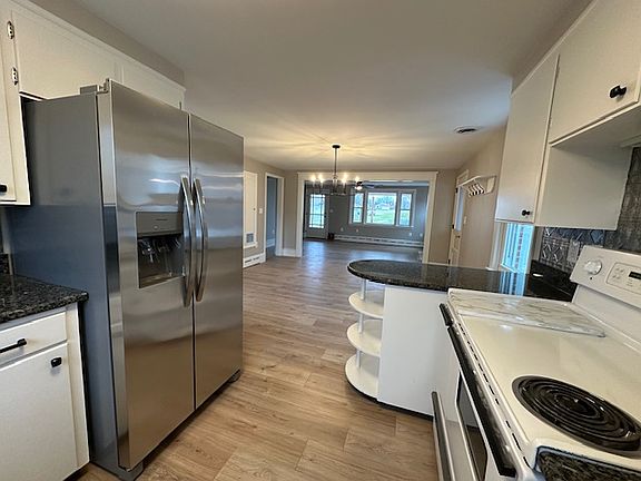Magnificently renovated three bedroom, one bath first-floor home located just off Route 140 convenient to Westminster and 795. Upon entering this home you will be greeted by an open-floor plan. In the foyer area you will find an area for hanging coats and perfect for a small shoe rack. The kitchen has freshly painted cabinetry and new granite counters with hues of grays, blacks, silver and blue which goes beautifully with the freshly painted gray walls with white trim. Kitchen includes an extra wide stove with oven and broiler, white dishwasher and new stainless steel side-by-side refrigerator and sink with high-arc faucet. Antique backsplash adds a special touch to kitchen walls. The dining room area has a stunning black matte chandelier light pulling together the black from the granite counters in the kitchen. There is a fold down ironing board in a hidden compartment off the dining room area. The living, dining, kitchen and hall areas all have new luxury vinyl flooring. This home has a lot of windows bringing in rays of sunlight throughout. The living room has a fireplace (to be used for decorative purposes only) that has been freshly painted and is the focal point of the room. The living room has a new lighted ceiling fan and hallways and foyer have new recess lighting. There is a small sunroom or breezeway just off the kitchen area. Onto the bedrooms, you will find each room is quite spacious, especially the primary bedroom. Each bedroom has newly installed neutral gray carpeting and new lighted ceiling fans. The primary bedroom has an extra large closet and ceiling fan. The bathroom has a new vanity, vanity light, toilet and flooring. It has the existing tub/shower and a linen closet conveniently located in the bathroom. The hall bath is quite wide and can accommodate a sofa table. There is a stackable washer and dryer just off the hallway. This unit includes a two-car garage with concrete floor and two overhead doors. The breezeway connects the kitchen to the garage. There is a new stairway just off the living room that leads to a walk-up attic area. Easy storage of holiday decorations and other personal items with easy access from the living room area. This home has warm, radiant oil heat and central air conditioning. Tenant is responsible for oil heat, trash pick up and electric is split between both nits. There are solar panels on this home so electric bills are minimal. The lawn care is shared responsibility of the tenants. Upper-level unit is responsible for snow removal in front driveway and walkway. This is a MUST SEE! Please contact agent by phone for more details or to schedule a tour! $2,400.00 per month $2,400.00 security deposit 18-month lease is required. Application fee is required.