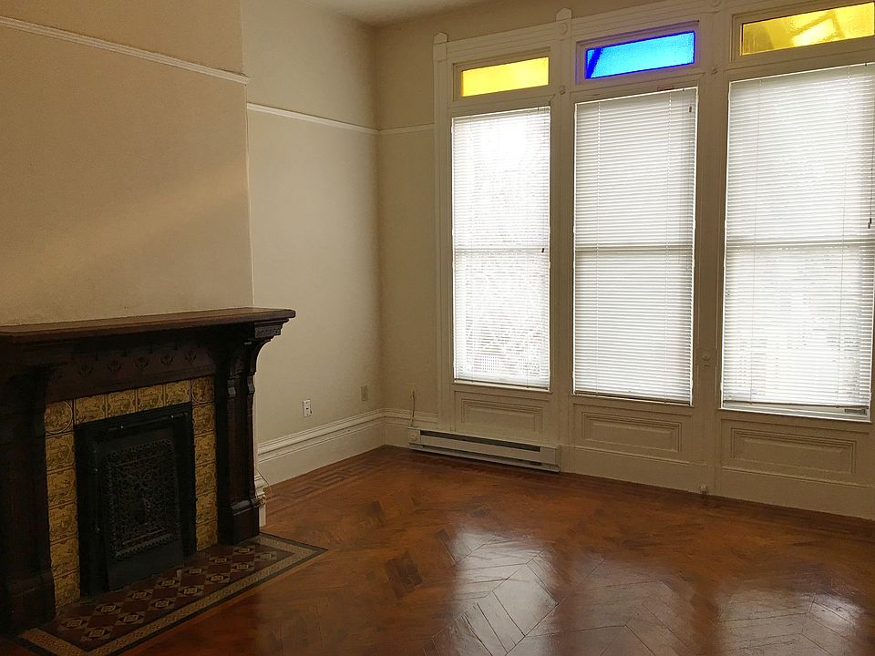 This amazing Victorian unit features wood floors, high ceilings, a fireplace and beautiful period detail. Centrally located with off street parking and shared laundry in the building. Available now! No pets, one year lease term, tenant pays rental fee of 30% of first month's rent