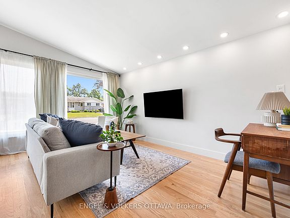 Calling all investors! 2061 Featherston Drive is a stylishly renovated bungalow offering two self-contained units, making it ideal for multi-generational living or rental income. The main-level unit opens with striking design details, including patterned ceramic tile flooring, a black slat accent wall with hidden storage, and a discreet laundry closet with full-sized appliances. The living space impresses with vaulted ceilings, recessed lighting, and wide-plank hardwood floors. Oversized windows in the living and dining areas fill the space with natural light and provide seamless views across the open-concept layout. The kitchen is as stylish as it is functional, featuring navy cabinetry with brass hardware, white quartz countertops, a white tile backsplash, and stainless steel appliances - all tied together with modern lighting and a large sink-side window. Three bedrooms offer flexible space for family, guests, or additional living space, each enhanced by vaulted ceilings, hardwood flooring, and generous closets. The renovated bathroom is a standout, boasting herringbone tile in the shower, penny tile flooring, a custom green tile accent wall, and matte black and brass fixtures for a refined finish. The lower-level suite - accessible by its own private entrance - is bright and contemporary, featuring a sleek white kitchen with subway tile backsplash, quartz-look counters, and a large stainless steel fridge. A comfortable living area, full laundry, and one spacious bedroom with a modern 3-piece bath complete this versatile layout. Outdoors, each unit enjoys its own dedicated backyard space with new wooden fencing. With an updated steel roof (lifetime), windows, furnace (2020), and A/C, this home delivers comfort and efficiency in equal measure. Steps from multiple schools and Ottawa's major hospital campuses, this property offers suburban tranquility with unbeatable central access.