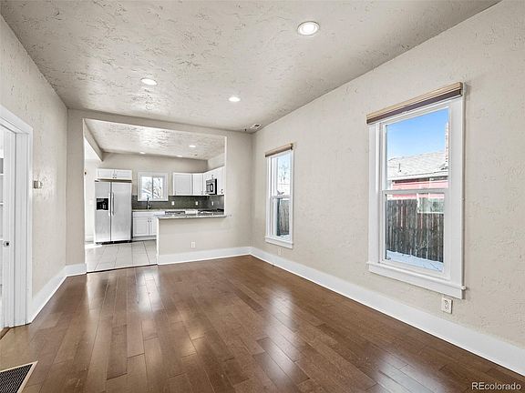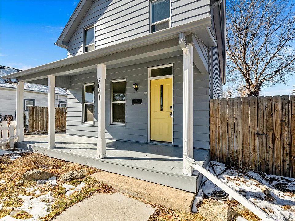 Move in ready 4 bedroom 2 bathroom home! You are greeted by the white picket fenced front yard and charming covered front porch. The main level features high ceilings, a main floor bedroom, updated full bathroom, living room, updated kitchen with dining room, and laundry room (washer and dryer included). Don't miss the stainless steel appliances, granite countertops, extra large pantry, the ample counter space, and plenty of kitchen cabinet storage. The upper level has a cozy bonus loft space, 3 spacious bedrooms, and another full bathroom. New window treatments throughout. The fully fenced awesome backyard is ready for play and entertaining with the gas fire pit, electric hook-ups for the hot tub on the patio, and don't miss the storage shed. Sprinkler system in the front and back yard. Blocks from Stanley Marketplace, Eastbridge shopping center, and many parks/trails. Up and coming area with lots of new construction.