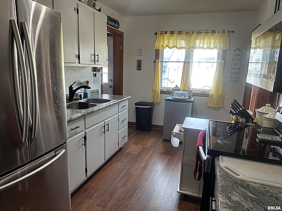 Adorable 2 bedroom 2 bathroom home on corner lot in great location with 2 car garage having new metal roof. New replacement windows, new awning, new landscaping and new fencing. Home has finished living space (office/den) in basement as well as large open area for entertainment/recreation and bathroom. Wood burning Fireplace (has gas insert in it). Seller subject to finding suitable housing. Shed does not convey. Movable cabinets in kitchen do not convey.