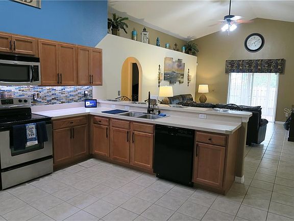 MUST SEE this 3 bedroom 2 bath beautiful single family home just minutes from the Turnpike and Hwy 27, NEWLY LANDSCAPED front yard with SPLIT FLOOR PLAN and FENCED BACKYARD located in Lexington Village. Upon entry you will notice the VAULTED CEILINGS AND CERAMIC TILE throughout the home. This home features a LARGE KITCHEN complete with STAINLESS STEEL APPLIANCES, GLASS MOSAIC BACKSPLASH and an OFFICE NOOK area. The master suite features a LARGE BATHROOM complete with DUAL VANITY SINKS, SOAKER TUB and a STANDING SHOWER. Enjoy the ability to entertain guests and family in the FRONT PORCH SEATING AREA or the BACK SCREENED IN LANAI. For you and your families protection rest easy knowing your home has 2 OUTDOOR SECURITY CAMERAS, SMART LOCKS, AND METAL CORRUGATED HURRICANE SHUTTERS to protect you during hurricane season. Call to schedule your private showing TODAY!