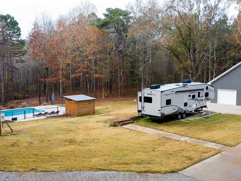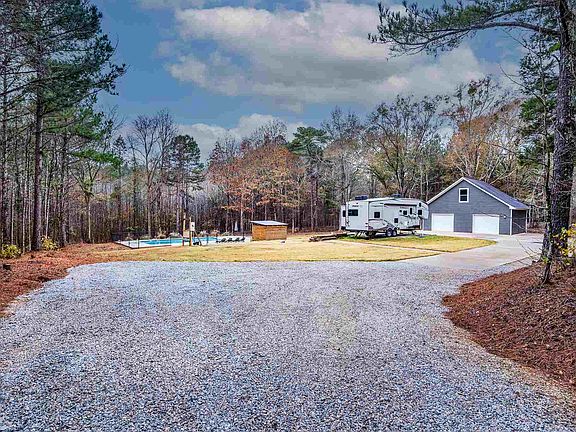 This is unique.... over 4 acres of land with water and electric on property. Spacious 2 car garage with separate stairs up to storage area above. Parking Pad & Pool!! There was a home, but it burned and is no longer on the site; however, you have a well, extended 2 car garage and parking pad already in place. Gated entrance, gravel drive... come take a look! RV Does not Convey