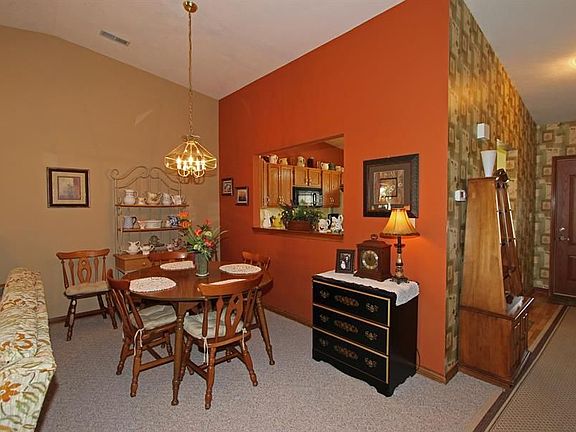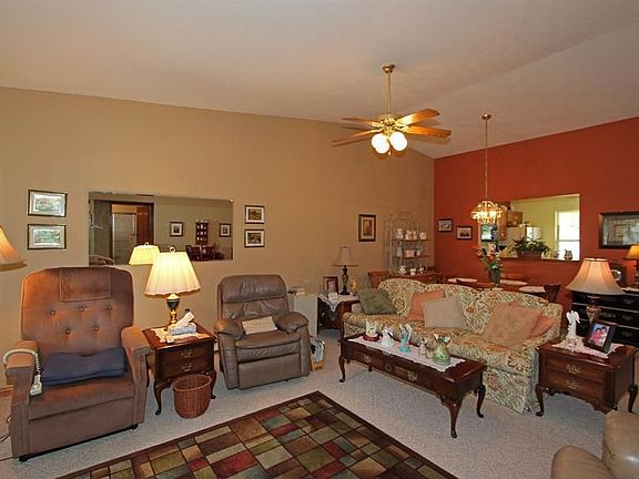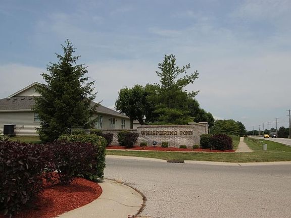 Carefree Living at Whispering Ponds. Custom built with stained woodwork, 6-panel drs, Community atmosphere w/nice clubhouse for activities. Relax on your Sunporch or large patio w/electronic awning as you view the nice stocked pond w/ fountain, larger lot on corner,w mature trees, large great rm w/ vaulted ceiling, newer roof, furnace, hot water heater, dishwasher, gutters, & freshly painted, added assessable shower, automatic awning over entended back patio w/ storm detector, & new front door!!