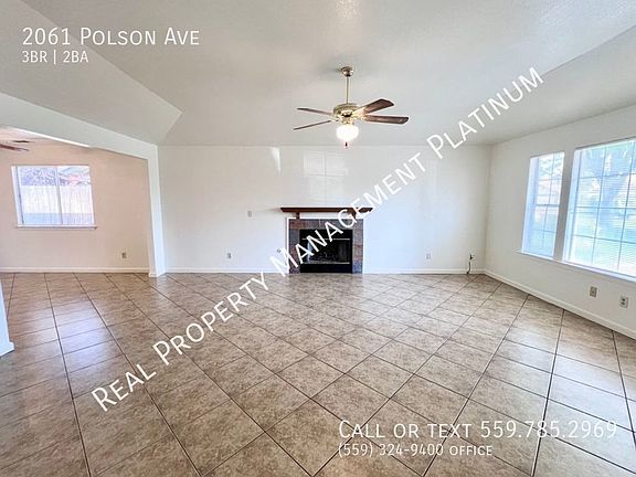 Welcome to this charming 3 bedroom, 2 bathroom home located in the desirable city of Clovis, CA. Built in 1989, with 1454 sq. ft. and an open floor plan. Large great room with ceiling fan and fireplace. Kitchen has small center island. Appliances include electric stovetop/oven and dishwasher. Spacious dining area with access to the backyard. Main bedroom has walk-in closet. Attached main bathroom has dual vanity and walk-in shower. Two additional bedrooms. One additional bathroom with single vanity and shower/tub. Lots of cabinet/storage space throughout hallways. Laundry room has washer/dryer hookups with cabinet space, and second access to backyard. Backyard has covered patio and large grass area. Attached 2 car garage. New energy efficient HVAC unit. Yard care is provided. Automatic sprinklers. Credit score above 650 required. *Move In Bonus $600 discount on first full month's rent with contingency that 12 month lease be fulfilled. Dog under 50 lbs excepted. Non smoking. Renter's insurance is required. Cross streets are Armstrong & Tollhouse. DRE# 01901101. All information is deemed reliable but not guaranteed and is subject to change. Bre# 01901101 Dogs Under 50 Lbs Accepted New Energy Efficient Hvac Unit Non Smokng Renter's Insurance Required