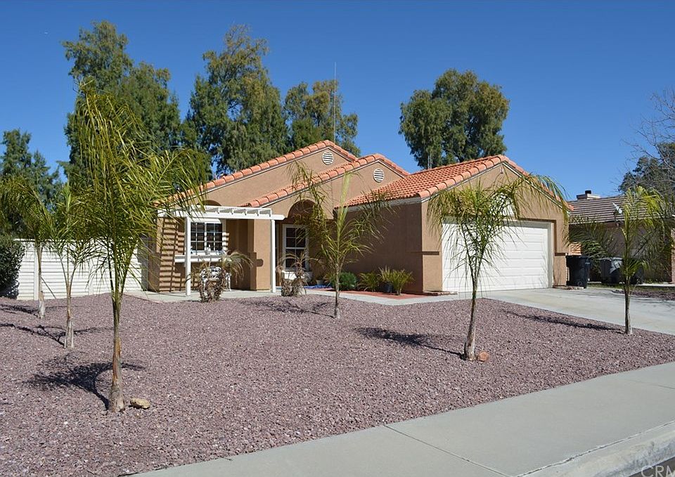 Beautiful single story home in San Jacinto, CA is perfect for First Time Home Buyer. This home has been very well cared for and shows pride of ownership. Offering 3 Bedrooms and 2 full bathrooms approximately 1,114 Sq Ft building size, 7,405 Sq. Ft lot size. Located in San Jacinto Unified School District. This home is conveniently located within walking distance to Parkside Park which includes picnic area, playground and basketball courts for recreation and is perfect for a family with kids. Master bedroom connected to Master Bath with walk in closet. Sliding door from living room that leads to back yard. Backyard is a blank slate ready to be transformed. Kitchen with granite counters opens to tiled family room. Two car garage attached with laundry hook ups. Must see for any family. Drought-tolerant landscape in the front yard with very little maintenance. This home is priced to sell fast! Close to Ramona Expressway and is great location for any commuter traveling to San Benardino, Riverside, Temecula, or Palm Springs.
