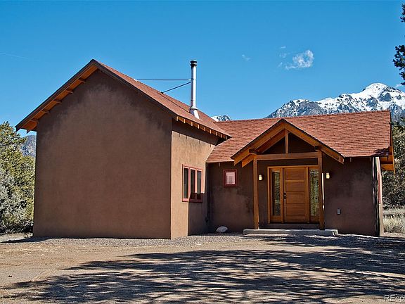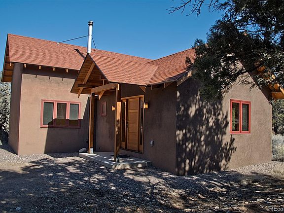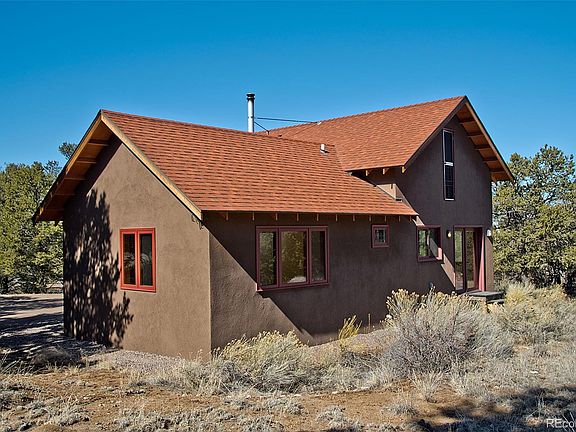 Discover your own private retreat/sanctuary in the Sangre de Cristo foothills of the Baca Grande, famous for views & unspoiled nature. The architecturally designed home boasts vaulted ceilings, accentuating spaciousness & natural light. Tucked away on 1.45 acres of pinon-juniper woodlands, this property offers a rare opportunity for peaceful living & room to grow. Originally constructed as an art studio, the interior finishes, fixtures, kitchen, and bathroom are almost new. Upgrades completed in 2021 include: maple wood-veneer flooring, cabinetry, counters, island & appliances, bathroom tile, fixtures, & washer/dryer, honeycomb blinds, water heater, electric cove heaters. Enter via covered concrete porch, featuring handsome cedar posts & heavy Shaker front door w/ sidelights. The interior space is characteristic mountain contemporary: bright airy rooms w/ white walls/ceilings, wood trim/flooring, & premium, aluminum-clad wood-casement windows. A wide hallway separates the spacious bedroom from the great room & kitchen, w/ custom-tile bathroom & attic storage in between. The large great room features 17' vaulted ceiling, skylights, wood stove & separate living/dining spaces. The kitchen features elegant dark-gray lower cabinets w/ custom open shelves above. Counters are stainless steel at the sink, butcher block everywhere else. A large island w/ counter seating makes collaboration easy, a perfect serving buffet for the dining area. Glass French doors open to the very private backyard, w/ unimpeded mountain views. Add a deck or terrace for easy al fresco dining, relaxing, entertaining, hot tub, etc. Circular stairs lead to loft above, w/ egress door, potential for balcony. Electric wave heaters throughout. Exterior stucco & architectural shingles. Crawl space access via walk-in closet. Access to Dream Way and retreat centers via Spanish Creek Rd. Greenbelt trails nearby. 10 min from Crestone, an Int'l Dark Skies community, with 2 local schools. Call for more info!