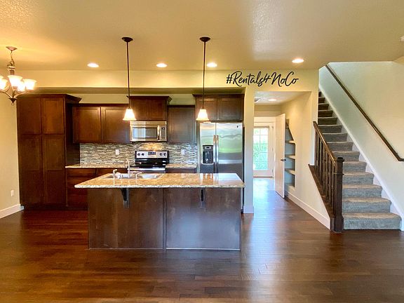 Take a look at this absolutely beautiful townhouse in central Fort Collins, in the Bucking Horse community! Fully upgraded featuring two en suite bedrooms upstairs with a half bathroom located on the main level. Large covered front porch with room for a grill and small table with chairs. Garden in the front, gated to allow privacy. Kitchen offers large island with granite countertops, stainless steel appliances with dark wood cabinets. Open living area on the main level, living room has a gas fireplace. Attached one car garage that enters into the laundry room. Laundry room has access to the back of the property, as well as full size washer and dryer, utility sink and bench for storage! Upgraded blinds throughout allow you to open from the top or bottom. Both bedrooms are located on the second level with attached bathrooms for each. Large windows with storage benches located under each window. Community amenities include tons of walking / biking paths, community pool, large open green area in front of the community pool. Great located - you can walk to Dutch Bros, or visit a local favorite - The Farmhouse at Jessup Farm! Restaurants, grocery stores, banks, all located right around this community. No pets allowed, service animals excluded. Rent includes water/sewer and trash, Tenant responsible for all other utilities. Listed and Professionally managed by Rentals 4 NoCo Property Management. No pets allowed, service animals excluded. Rent includes water/sewer and trash, Tenant responsible for all other utilities. Listed and Professionally managed by Rentals 4 NoCo Property Management.