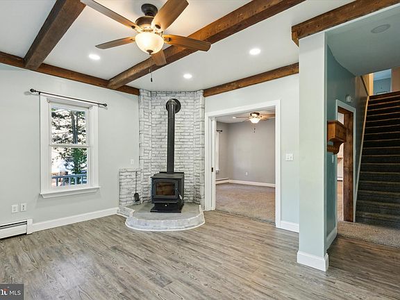 This charming 6-bedroom, 1.5-bath home in Milford Township offers modern updates and plenty of space for comfortable living. The property features a cozy wrap-around porch that leads into a warm sitting room, which could serve as an office, study, or playroom with its inviting wood-burning stove. The main level boasts a spacious family room that connects seamlessly to the dining area and an updated kitchen, complete with recessed lighting, luxury vinyl plank flooring, and an improved powder room. Upstairs, you'll find a full bathroom with dual vanities and a convenient laundry room area. The home accommodates a total of 6 bedrooms spread between the second and third floors. Recent updates include a new roof (2 years old), new boiler (4 years), new electrical system (4 years), and a new hot water heater (2 years). With fresh paint, upgraded flooring, and updated kitchen and bathrooms, this home is ready for you to move in and enjoy. Plus, there's ample land and outdoor living space for kids to play and grow.