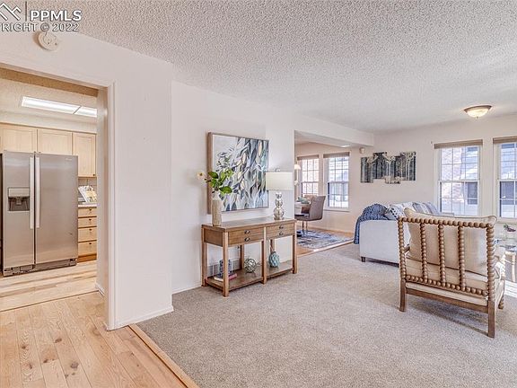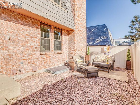 Welcome to your new home, it is centrally located in Colorado Springs and offers a lot of space and storage! This end unit townhome is move in ready. Rare find is the two-car oversized attached garage that has extra space for storage. Mail is delivered in a mail slot on a garage entry door, no need to walk to a mailbox. New carpet and other updates are throughout this home. Binds on all of the windows, main floor has motorized blinds with remotes. Not only does the end unit give you additional windows making it lighter and brighter, but the end unit also gives you additional space in the fenced-in low maintenance courtyard, plenty of space for a pet to roam, space to set up outdoor furniture to enjoy the great outdoors. This unit is within feet of the Clubhouse for easy access. On the main level there is a large living room with a gas fireplace. Off the living room is a dining area and galley kitchen with wood floors. The kitchen offers lots of cabinets and a pantry for all of your kitchen needs. The kitchen has stainless steel appliances, microwave, stove and dishwasher. There is an oversized bonus room between the kitchen/dining area and garage This room can be used as a den, office, sewing/craft room, exercise/workout area or an atrium to name a few. This room is light and bright as it is two stories high with sky lights. On the main level is a half bathroom. Upstairs is the main bedroom and family room with a built-in wet bar and a fireplace. The main bedroom has a 5-piece bathroom, including a jacuzzi tub and a walk-in closet. Additional sky lights are in the main bedroom that opens to the atrium below. In the basement is the second bedroom that has a window well that allows a lot of light in. There is a full bathroom in the lower level along with the laundry room. Additional space in the laundry room that you can use as storage, exercise room or lots of other uses. Still need additional storage, you can find it under the stairs. This is home is a must see!