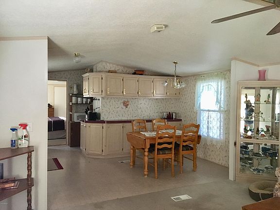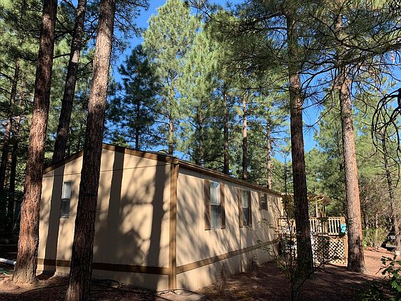 Home in the woods with towering ponderosa pines located on the cul de sac for a feel of seclusion and privacy. Covered deck is large with a ramp if needed. Open floor plan with vaulted ceiling and large living room. The eat in kitchen has an abundance of cabinets for extra storage. There is a split bedroom floor plan. The master retreat has walk in closets and a large bath. The guest bedroom is next to the second bath to provide for a guest ensuite feel. Laundry room has storage cabinets and back door to extra storage shed. The back yard is perfect for play and pets and even has another large storage shed for all the toys. Take a look at this home in the woods.