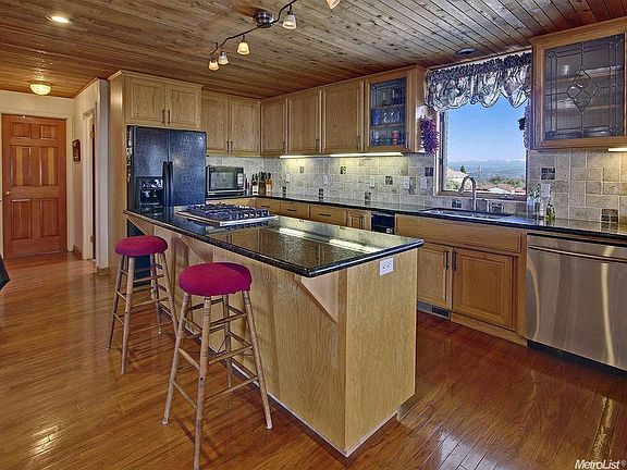 This modern craftsman on 5 acres is a rare find in today's market. The home exudes character and warmth with wood beam ceilings and hardwood floors. The centrally located fireplace provides a cozy atmosphere for gatherings. Gated entry to estate drive gives a glimpse of the peaceful country setting. Perched on the highest point on the property, this house takes advantage of sweeping views of the snow capped Sierras and local foothills. Entertain in the outdoor kitchen overlooking views.