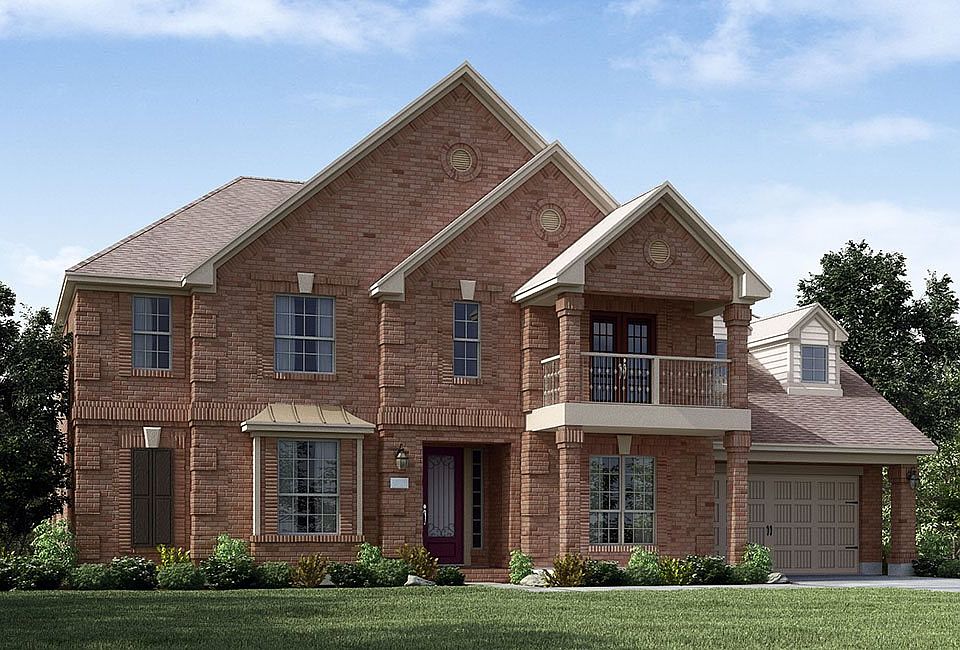 The grand two-story Bach plan by Village Builders features a welcoming foyer that opens to a lovely formal dining room, as well as a study with the options to add handsome ceiling beams and a built-in bookcase. The stunning gourmet kitchen features a uniquely shaped center island with a spacious walk-in pantry. An adjoining breakfast room offers access to the rear patio and features the option to add a handy built-in hutch. The generous family room features a corner fireplace and the option to add beautiful built-in shelving. This four bedroom home's first floor master suite includes a sitting area with the option to add a cozy three-way fireplace, and offers access to a spacious en suite master bathroom with dual sinks, private toilet enclosure, separate shower and tub, and an oversized walk-in master closet. The second floor features three secondary bedrooms with walk-in closets, two full bathrooms, and a large game room that features unique built-in window seating. The Bach floor plan also features the option to add an outdoor grilling area.