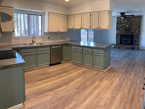 Quality remodeled home in a great neighborhood in Burney. 3 bedroom, 2 bathroom with formal dining room, living room and family room. Excellent layout. Completely remodeled with new flooring throughout, new bathroom vanities, new LED lighting, fresh paint inside and out, new roof, refinished 2 tone kitchen cabinets and new, beautiful concrete countertops. New range/oven and new dishwasher. Woodstove insert and natural gas forced air heat. Backs to open space and has a large backyard with newly poured patio. A must see!