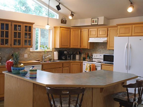 Custom home in serene setting offers 10 acres of land where privacy and wildlife abound. Open great room floor plan with large windows, daylight basement, A/C, main floor utility, master bedroom w/private deck and hot tub and 2 amazing "his and hers" shops that will astound you! Home is located near Knight's Lake, Riverside State Park where you can hike, ride horses and use the river! Well has 3000gal holding tank. Wood stove can heat entire house.