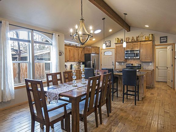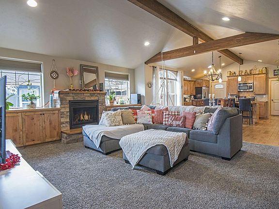 Charming single level, craftsman style home, is awaiting it's new owner. Driveway is adorned with beautiful pavers leading up to an oversized garage, featuring epoxy floors, ample storage room, & a separate RV parking area. Home is light & bright with vaulted ceilings, a gas fireplace with built-in blower fan for those cool winter evenings, as well as Central Air for those hot Central Oregon summer days. Providing a feeling of elegance with exquisite solid wood beams throughout, stunning engineered hardwood floors, as well as custom tongue & groove wood soffits. The Kitchen features all matching stainless steel appliances, custom cabinetry, and an oversized kitchen island. This three bedroom, two bathroom home offers a chic primary bedroom with a bathroom, walk in closet and private access to the hot tub. This open concept home shines with unique convenience from a Central Vacuum system, Levelor Cellular Shades, and underground sprinklers.