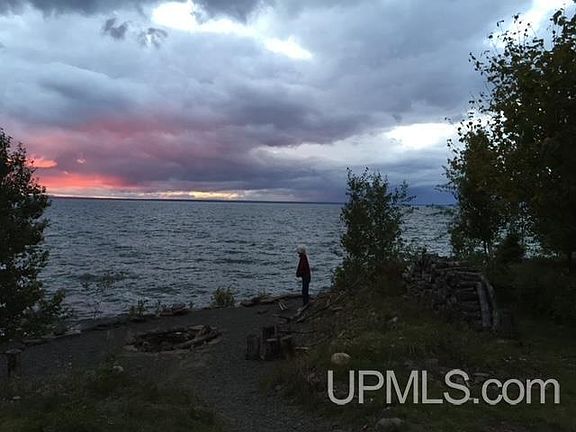 Beautiful waterfront on the Pte Abbaye Peninsula! 228' of waterfront, driveway in place, cleared building site and a small clearing on the bank of the shore with a fire pit. This is a great place to gather or to be alone in the serenity that Lake Superior has to offer. Sunset views and a short bluff to the shore! Pull up your camper and unpack!