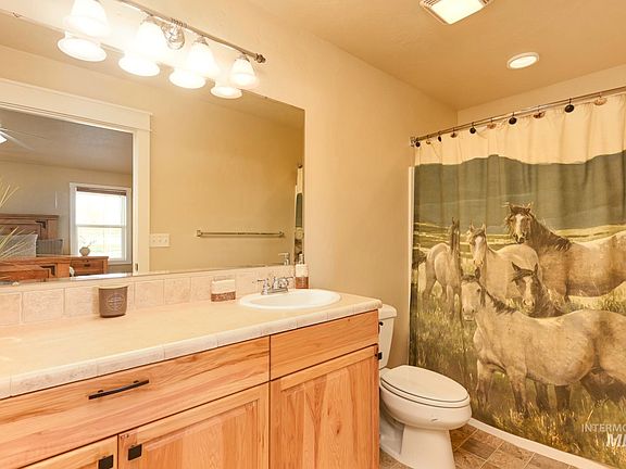 FULLY SET UP & READY TO GO FOR FIRST TIME OR NEW ANIMAL OWNERS. Quintessential country living located .25 miles from the road, unwind on the sweeping wrap-around porch, or surrender to the allure of the night sky while luxuriating in the bubbling embrace of the hot tub. With brand new flooring and paint, just outside is a haven for animal lovers w/ 2 fenced pastures for horses & cows to graze. Made for equine enthusiasts, revel in the grandeur of the fully illuminated arena, complete with horse stalls & hay barn. Self-sufficiency with ample parking and project space within the colossal 50'x48' SHOP, boasting a robust 200 amp service, numerous 220 outlets and a wood stove to keep you cozy during your endeavors. RV hookups, automated chicken coop and 65/30 domed storage barn ensuring ample storage for all your needs. Conveniently located mere minutes from I-84, shopping, boat ramps, hunting and entertainment, this enchanting haven seamlessly blends rural tranquility with modern convenience.