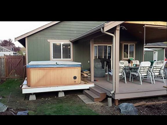 Bright home with open floorplan, vaulted ceilings and slider to professionally covered deck and oversized backyard. Two car garage with lots of storage, covered front porch and nice kitchen with eating space all close in to shopping and amentities. Quiet neighborhood and walking distance to sports court. Two out buildings and rv parking in fully fenced back yard.